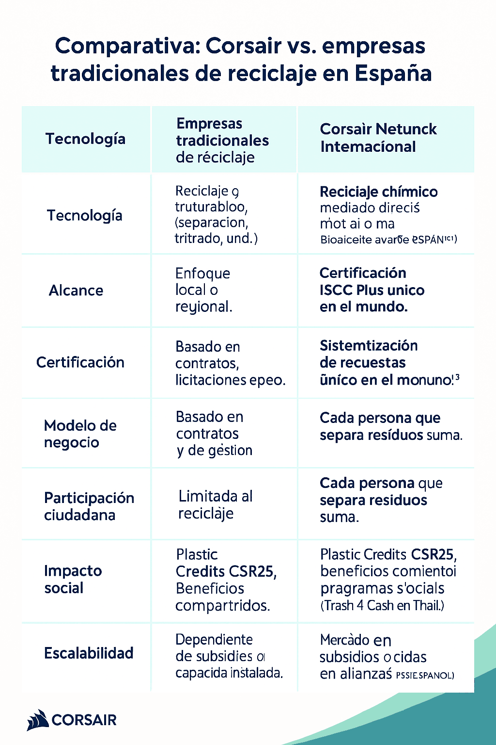 Sin embargo, la mayoría de estas empresas se centran en modelos locales o limitados a ciertos tipos de plástico, lo que deja espacio para soluciones globales y escalables como las que ofrece Corsair.